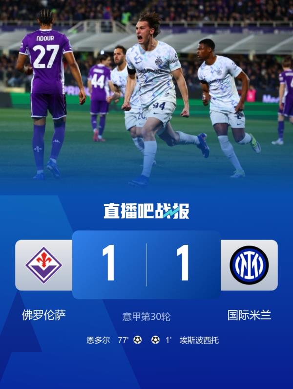 皮奥开场40秒闪击,恩多尔扳平比分。最终国米1-1佛罗伦萨。