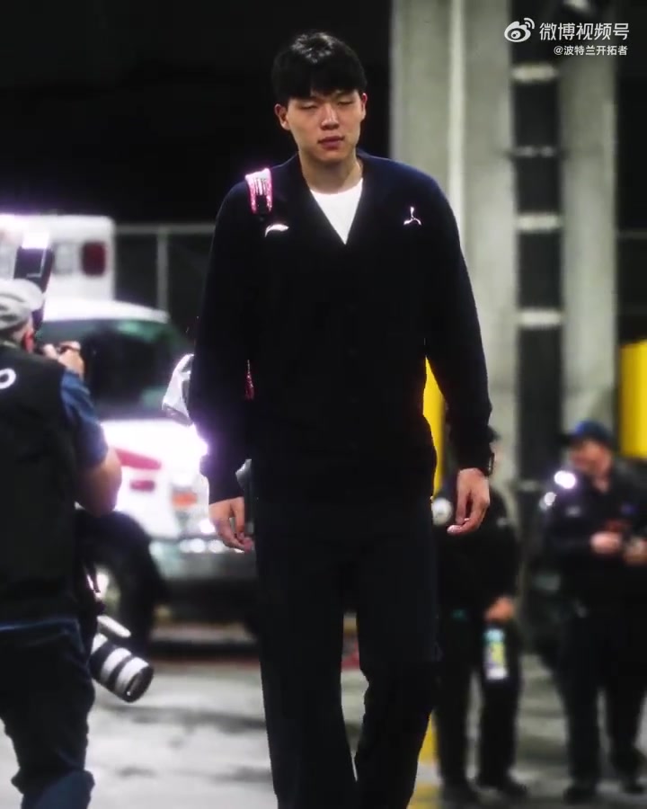 激战NBA杯!开拓者入场穿搭:杨瀚森一身深色+日常粉红小书包
