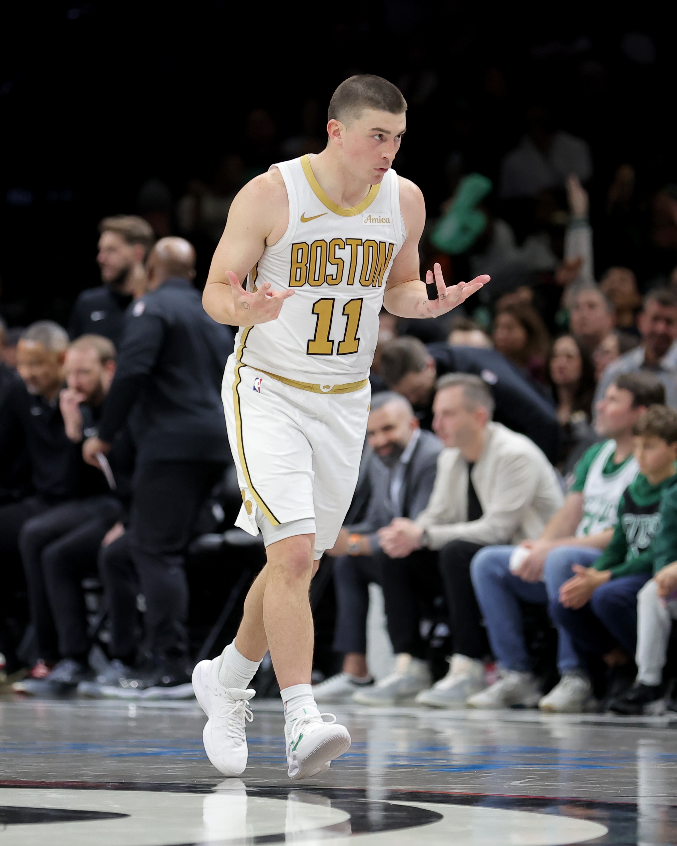 东契奇赛后和绿军众将拥抱沟通 还和养伤中的塔图姆抱抱 GIF-东契奇和绿军众将拥抱一下 还和塔图姆聊了聊 2026/02/23