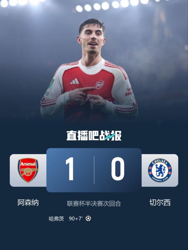 进联赛杯决赛!阿森纳1-0总比分4-2双杀切尔西 哈弗茨补时弑旧主
