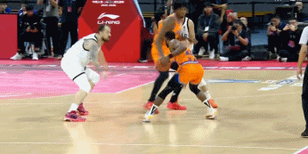 问题不大!李添荣和卢杜伟卡位时出现小摩擦 吹罚前者进攻犯规