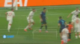 上半场伤停补时1分钟,半场结束,国米暂2-0布拉格斯拉维亚。