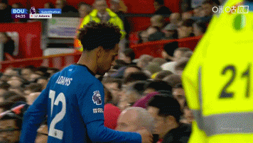 12月16日讯 英超第16轮,曼联主场迎战伯恩茅斯,比赛第5分钟,亚当斯封堵库尼亚射门时受伤,被斯科特换下。