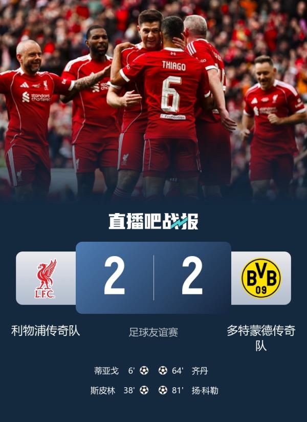 利物浦传奇2-2多特传奇 蒂亚戈闪击斯皮林世界波杰拉德失单刀