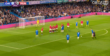 第30分钟,恩佐主罚任意球直接攻门,这球被人墙挡出。↓
